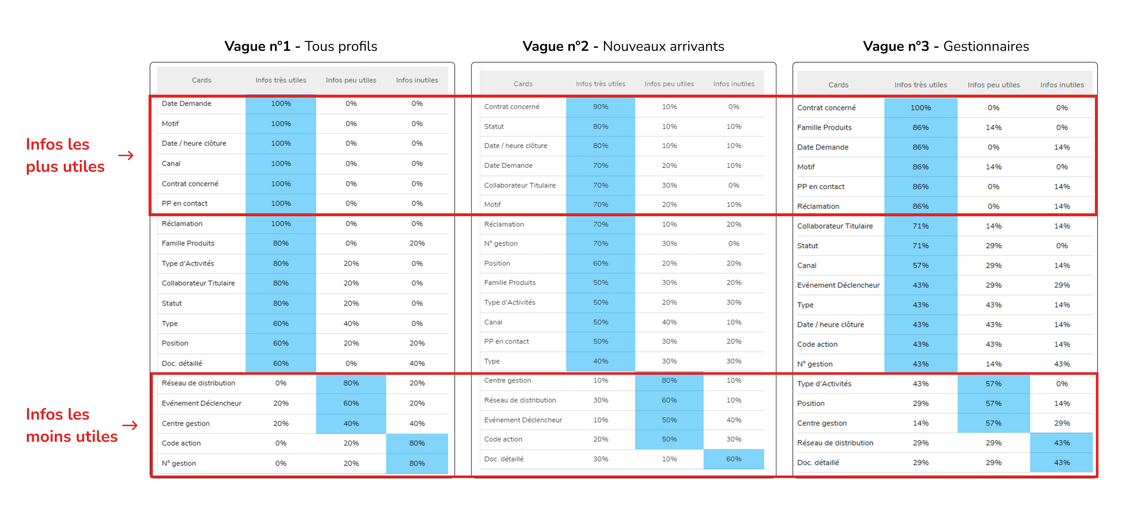 Enfin, sur conseil de ma Lead Designer, j'ai mené une troisième vague de 5 entretiens avec des profils gestionnaires, afin de confronter les premiers enseignements aux usages les plus intensifs et de valider leur impact sur le traitement quotidien des demandes à fort volume.