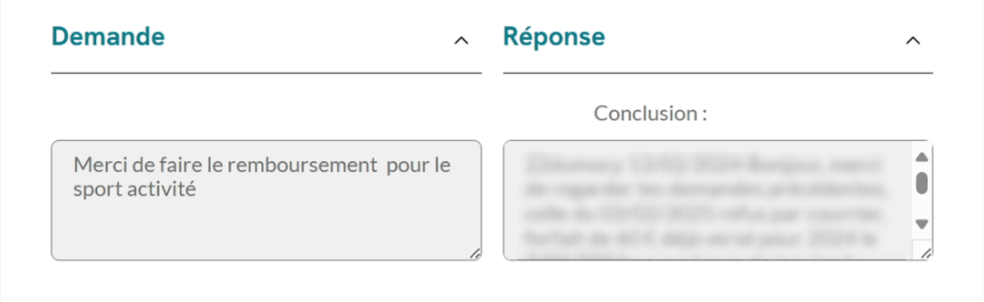 Lors des entretiens, les utilisateurs évoquaient tous les mêmes irritants concernant le bloc Demande/Réponse : trop de clics, gestes fatigants, et messages tronqués.